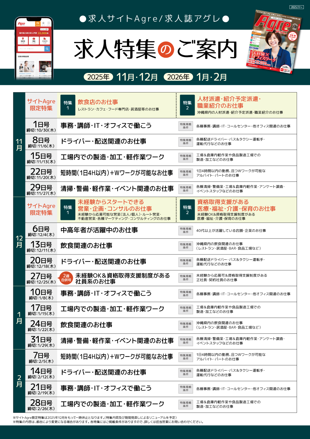 ※巻頭カラー広告:2025/11/5水曜日12:00受付まで→15:00最終確認